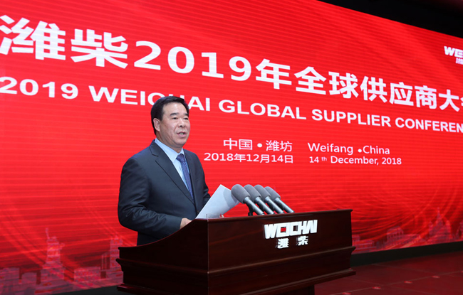 On behalf of the City Council and the municipal government, Liu Yiguang warmly congratulated Weichai Group on its outstanding achievements and outstanding suppliers, and paid tribute to Weichai for its historical contribution to the development of Weifang. He said that building a trillion-tier enterprise and constructing an international power city is a concrete action to implement General Secretary Xi Jinping's important instructions for developing and expanding the equipment manufacturing industry, a major project to promote the transformation of old and new kinetic energy, and a core support for promoting the national power industry to seize the commanding heights of the world industry, as well as for Shandong, Weifang and Weichai and the vast number of suppliers provide a rare opportunity for development. To build an international power city, Weifang conditions Superior, outstanding advantages. Weifang Industry Foundation is strong, rich in human resources, superior location, convenient transportation, open and inclusive. To build trillions of enterprises, the construction of international Power City, Weichai heavy responsibility in the shoulder, the mission of Glory. In recent years, Weichai Group has vigorously implemented the reform strategy, innovation strategy and internationalization strategy, and realized the evolution from single engine manufacturer, to power system, whole vehicle machine, hydraulic, intelligent logistics, luxury yacht, financial services diversified development, has become a world-renowned cosmopolitan enterprise group, has become a banner of national industrial Development, Weifang, the province and even the national manufacturing industry development of a bright pearl. The development of Weichai is a historical witness to the great achievements of China's reform and opening up for 40 years, and a vivid portrayal of the infinite vitality of China's reform and opening up Today's Weichai has stood at a new starting point for development. It is fully spirit of instruction and new development ideas, comply with the requirements of high-quality development, and rely closely on all weichai people, do not forget to first heart, remember the mission, rooted in Weifang, facing the world, firmly take the road of green development, innovation and development, open development, sharing , accelerate the creation of trillions of international strong enterprises, and strive to be the industry's high-quality development leader.